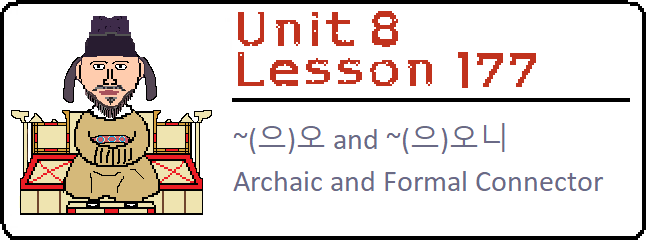 Lesson 177: In this lesson, you will learn about the structure of a common literary infix: ~오~. That is, a particle that squeezes between words and other grammatical principles. Although this infix is somewhat old-fashioned, it shows up a lot in literature and formal situations. |