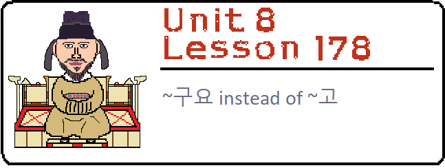 Lesson 178: In this lesson, you will learn a new take on a familiar particle. Specifically, you will see how ~구요 can replace ~고 given the right situation. |