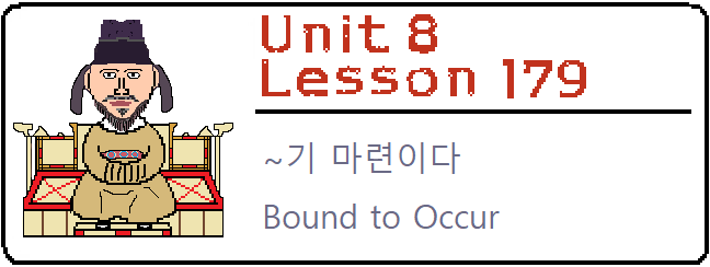 Lesson 179: In this lesson, you will learn about a noun that takes on a complex meaning. Although it’s technically a noun, you can think of it as functioning more like a grammatical principle. In this lesson, you will learn about 마련. |