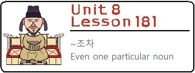 Lesson 181: In this lesson, you will learn about ~조차, a particle attached to nouns that has a similar function to ~도. We will explore how ~조차 differs from ~도 and how it adds emphasis. |