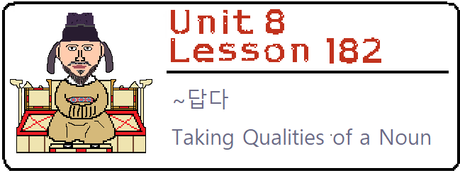 Lesson 182: In this lesson, you’ll learn how to turn certain nouns into adjectives using ~답다, a pattern that adds the qualities of a noun to a description. |