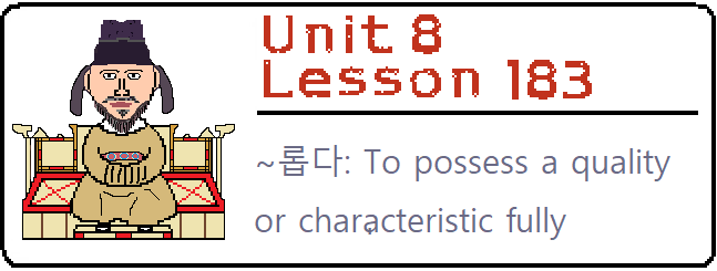 Lesson 183: In this lesson, you will learn another way to turn nouns into adjectives. This time, using the addition ~롭다. |