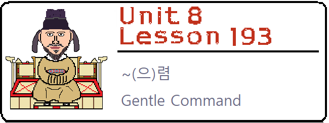 Lesson 193: In this lesson, you will learn another way to make a command. This way of making commands is much softer and is used by the older generation. In this lesson, you will learn about ~(으)렴. |