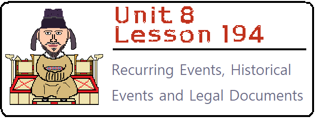 Lesson 194: In this lesson, you will learn how to name recurring events, historical events and parts within legal documents. We’ll explore the counters 회 and 차, and how they work with 제. |