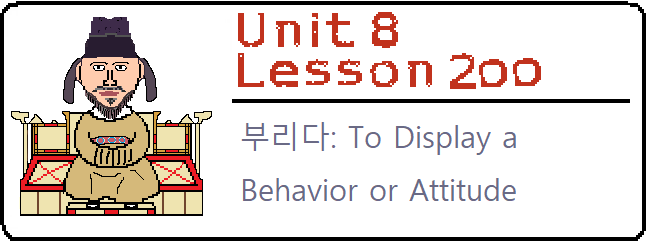Lesson 200: In this lesson, you will learn a challenging, but versatile word in Korean. This word acts on many nouns and has a complex meaning. In this lesson, you will learn about the verb 부리다. |