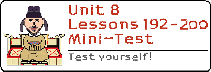 Lessons 192 – 200 Mini-Test: Test yourself on what you learned from Lessons 192 to 200! A Mini-Test like this will be uploaded after every eight lessons. Don’t worry if the test doesn’t go so well – this website is here to help you! |